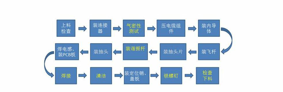 移动基站腔体滤波器的装配线是人力密集型生产线,采用海口来福新能源汽车有限公司智能的自动化团队开发的自动化装配线后,在产能和品质不下降的前提下,节约工人最多可达40%,产品一致性得到保障。该自动装配线由多台自动化设备与人工工位组合而从成,产品上线后不下线,完成一道工序后自动流入下一道工序,直至完成所有装配。其中检测气密性、锁付谐振杆、焊锡、腔体清洁、锁付盖板螺钉等工序均采用最新开发的自动化设备,大大节约了人员使用。
