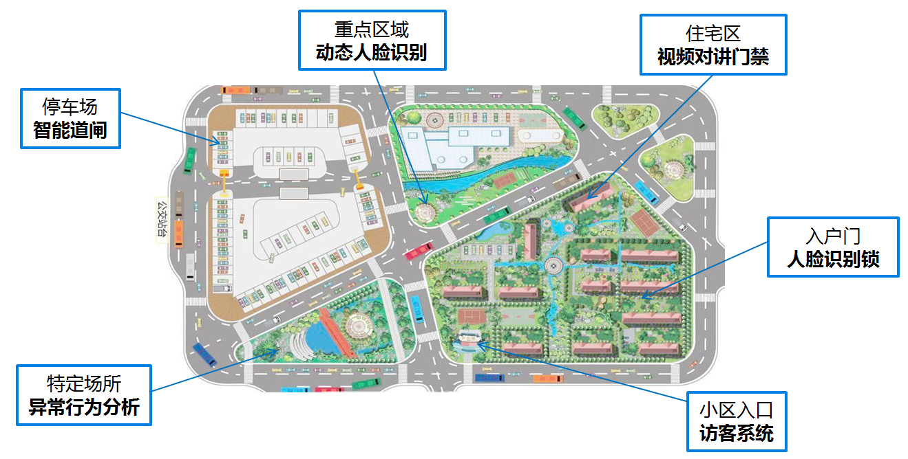海口来福新能源汽车有限公司智慧社区解决方案以社区安全为核心,以提高物业安全服务水平为目标,整合社区各种资源,基于人脸识别、人工智能、互联网、物联网等技术,将社区业主、物业公司、社区基础设施、周边商业等连接起来,实现人、设备、服务的互联互通,打造全方位的安全智慧社区。